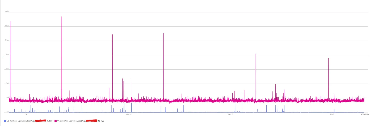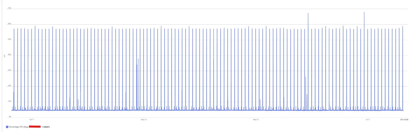 Or rather, it's doing exactly what Linux does when nobody's asked it to do anything. Running cron jobs, rotating logs, letting the Azure agent phone home every few minutes. The spikes are so regular you could set your watch by them.