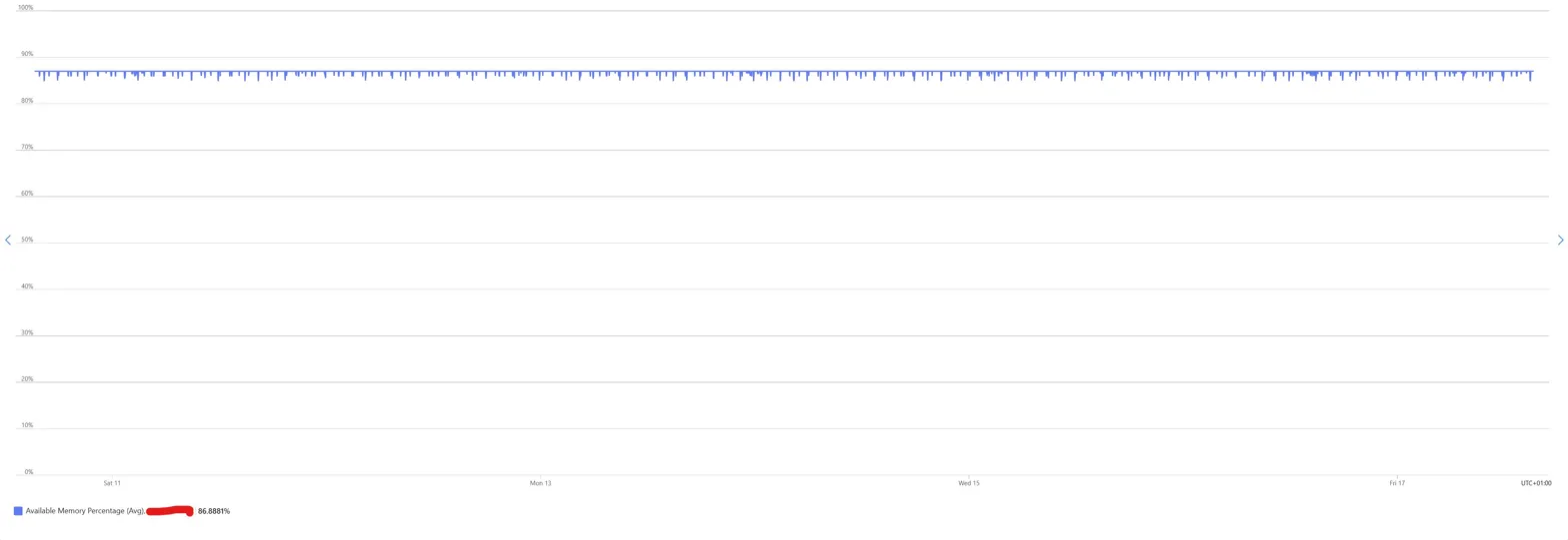 Memory sat at 86.89% available. A flat line for seven days. No peaks, no pressure, no working set churn.